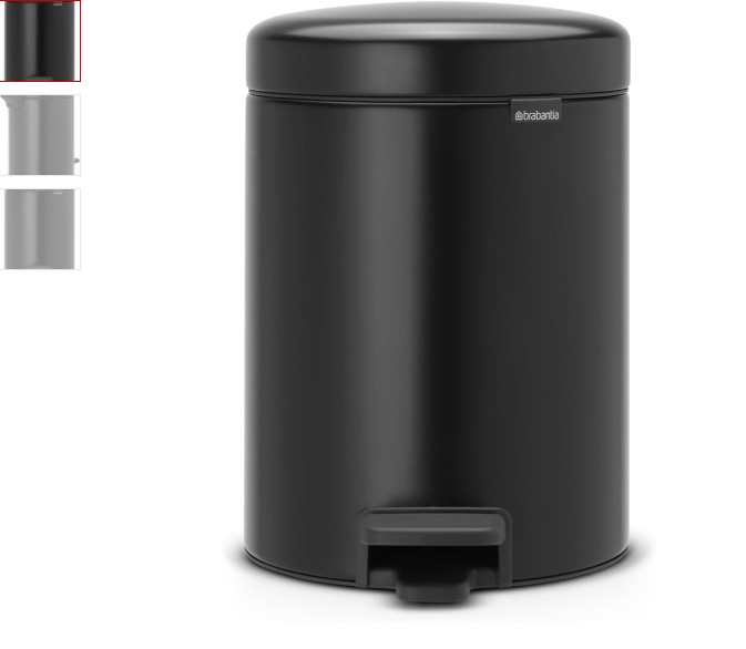 Brabantia NewIcon Pedal Bin, 5 litre, Plastic Bucket, Matt Black